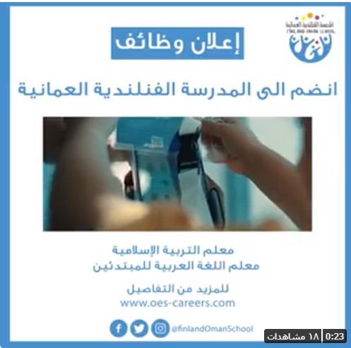 أعلنت المدرسة الفنلندية العمانية عن شواغر وظيفية ولمزيد من التفاصيل والتسجيل انقر هنا