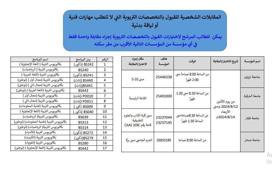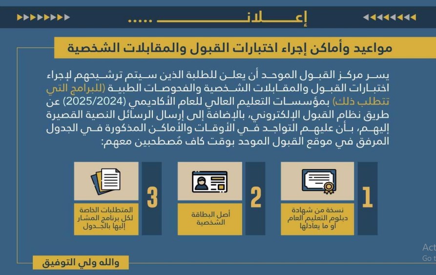 مركز القبول الموحد يعلن المرشحين لاختبارات القبول والمقابلات الشخصية