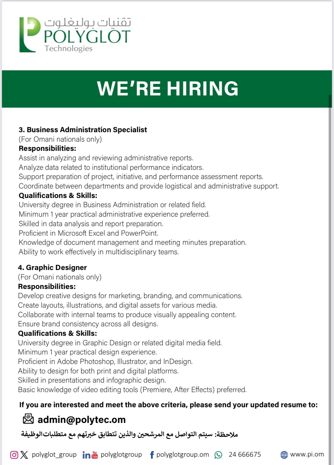 تقنيات بوليغلوت تعلن عن توفر 4 شواغر وظيفية