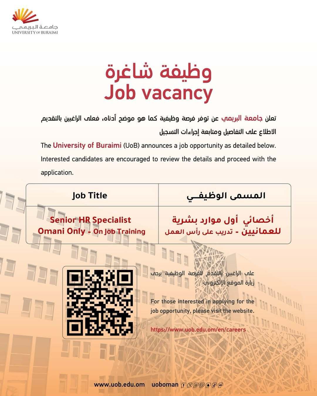 أعلنت جامعة البريمي عن توفر وظيفة شاغرة للعمانيين -منسق تسويق- وللمزيد من التفاصيل والتسجيل أنقر هنا