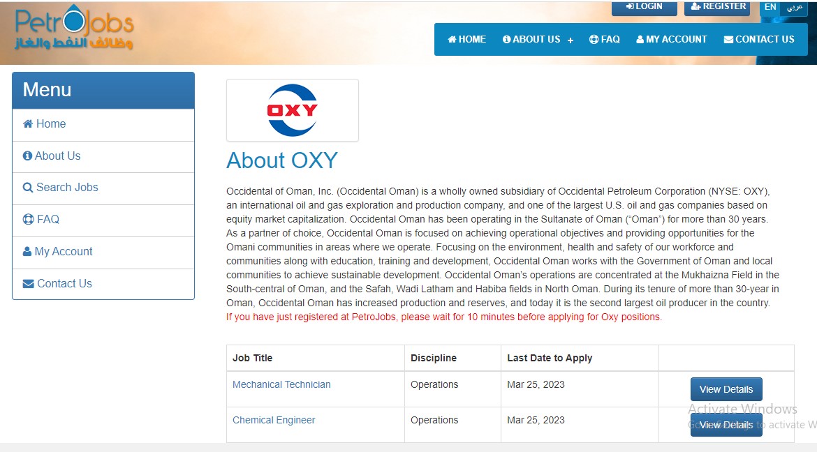 أعلنت شركة أوكسيدينتال عمان عن توفر وظيفتين شاغرتين لديها وذلك لمن يملكون الخبرة في المجال وللتسجيل أنقر هنا