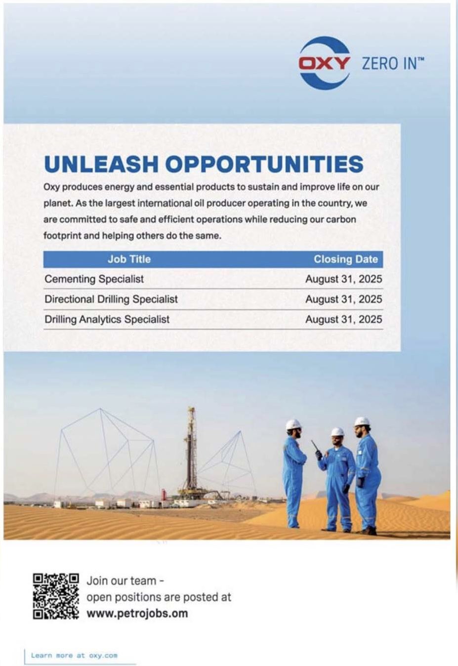 أعلنت شركة أوكسي عٌمان عن توفر 3 شواغر وظيفية وللمزيد منالتفاصيل والتسجيل عبر موقع النفط والغاز أنقر هنا