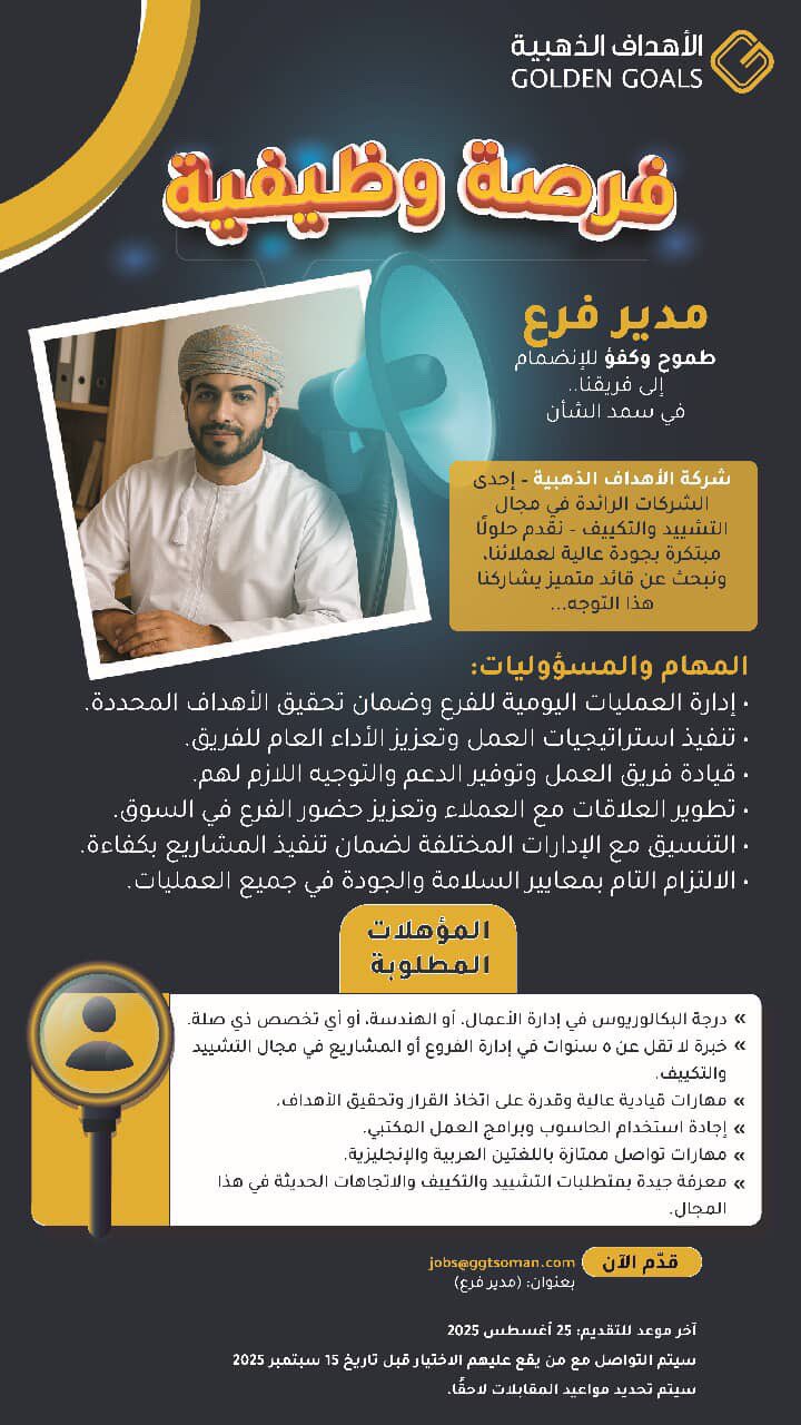 شركة الأهداف الذهبية تعلن عن وظيفة مدير فرع