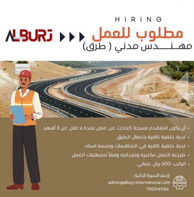 أعلنت شركة البرج الدولية عن توفر وظيفة شاغرة لديها – مهندس مدني (طرق)