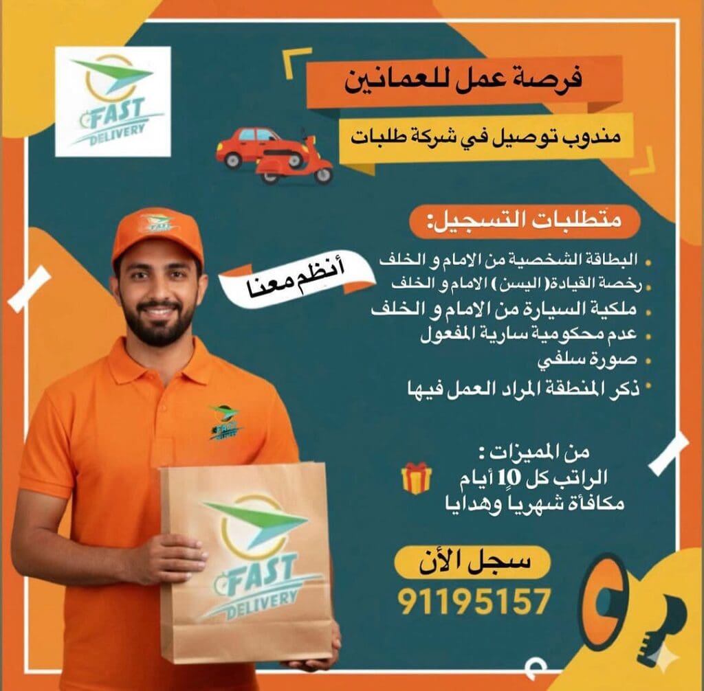 شركة التوصيل السريع تعلن عن فرص عمل “مندوب توصيل طلبات الطعام”