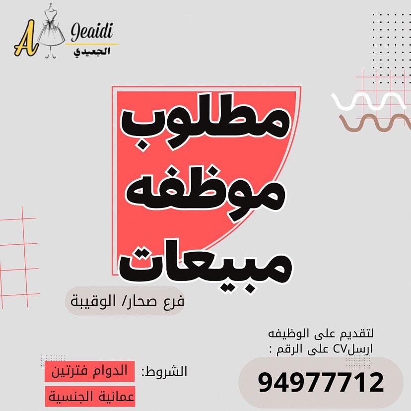 شركة الجعيدي للأزياء تعلن عن وظيفة موظفة مبيعات
