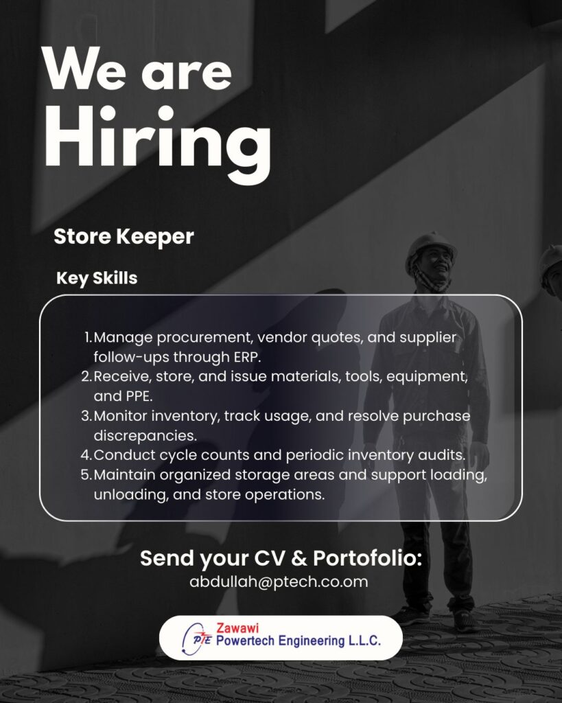 أعلنت شركة الزواوي للطاقة الهندسية عن توفر وظيفة شاغرة لديها – أمين مخزن – للإنضمام إلى فريقها
