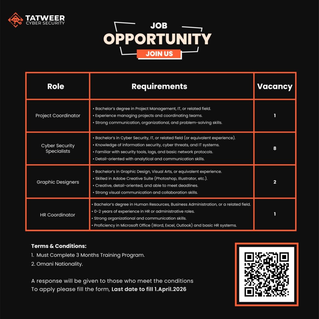 شركة تطوير للأمن السيبراني تعلن عن 12 شاغر وظيفي للعمانيين