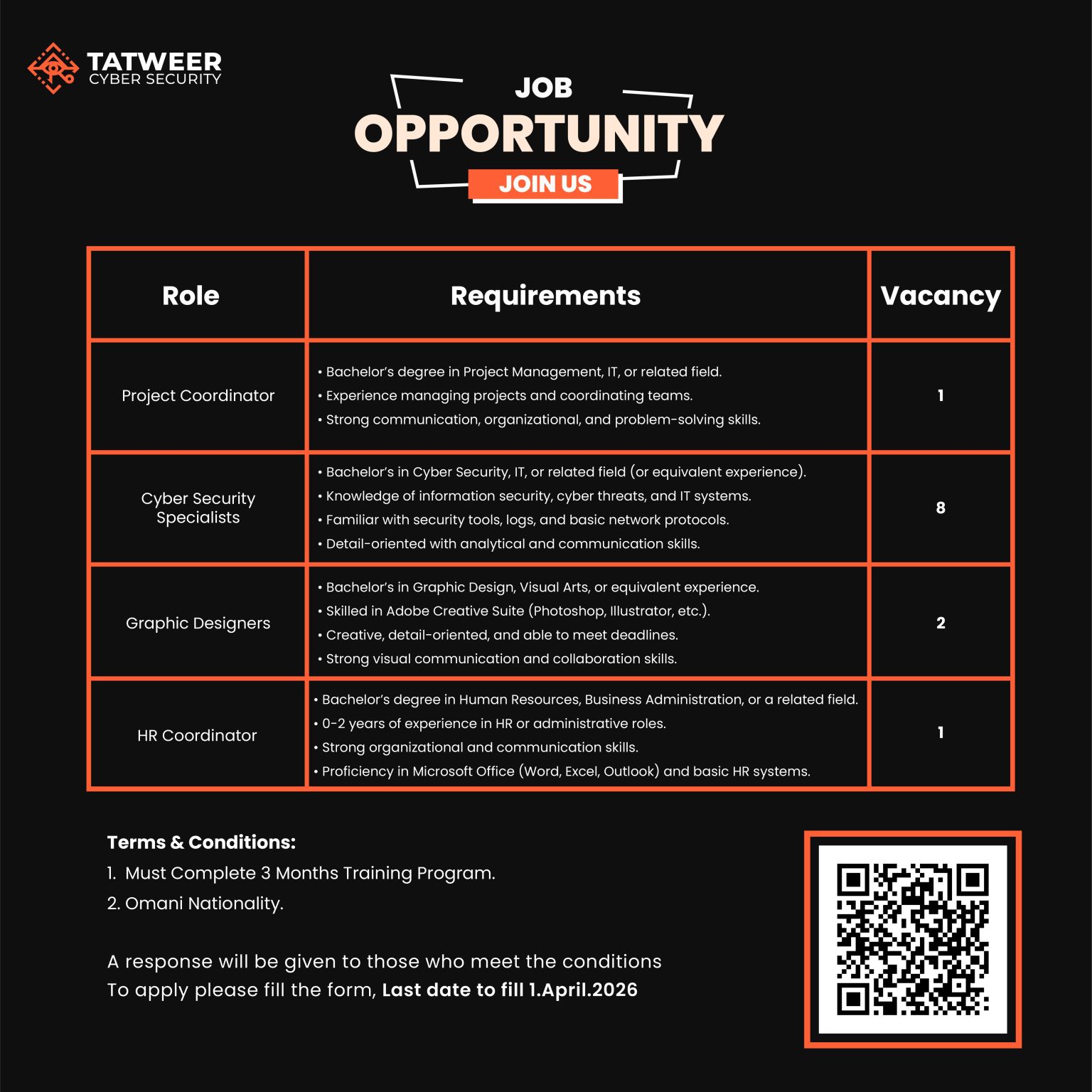 سيتم الرد على المتقدمين الذين تنطبق عليهم الشروط. للتقديم يرجى تعبئة النموذج، وآخر موعد للتقديم هو 1 ابريل 2026
