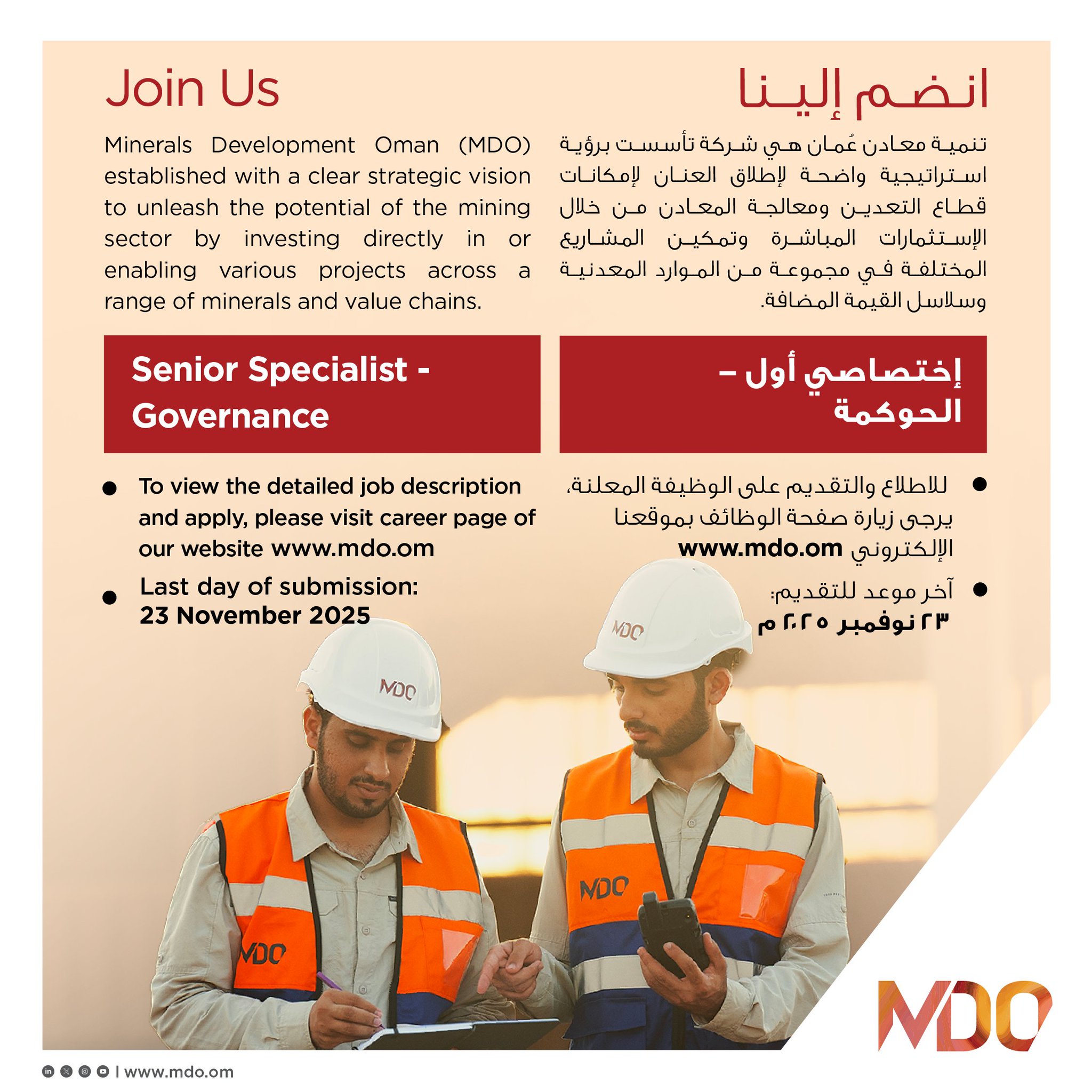 شركة تنمية معادن عٌمان تعلن عن توفر 3 شواغر وظيفية