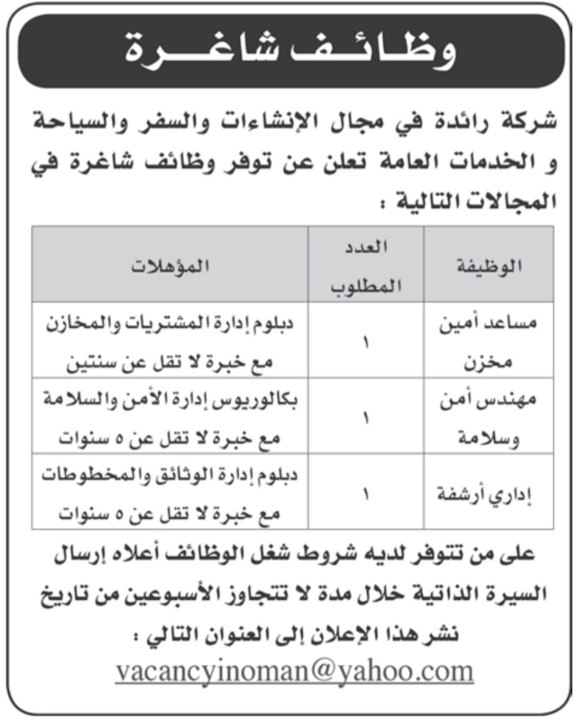 شركة رائدة بمجال الإنشاءات والسفر والسياحة تعلن عن شواغر وظيفية