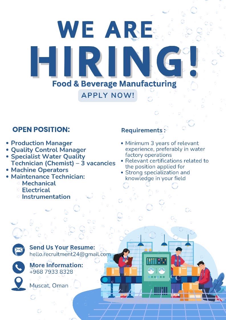 شركة رائدة بمجال تصنيع الأغذية والمشروبات تعلن عن 5 شواغر