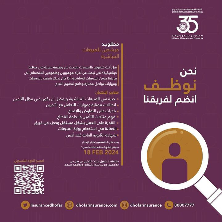 شركة ظفار للتأمين تعلن عن فرص عمل