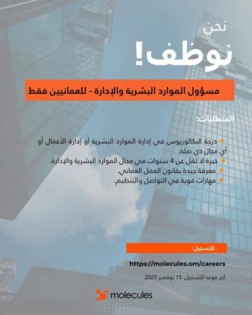 شركة Molecules تعلن عن مسؤول الموارد البشرية والتسويق