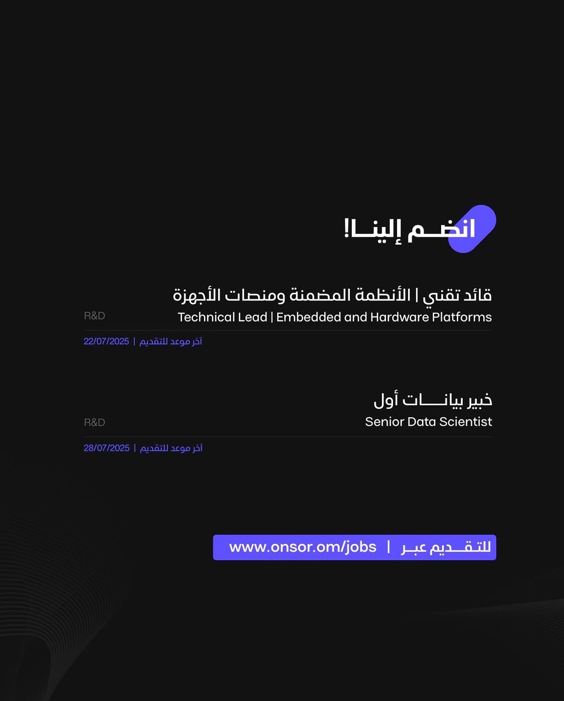 أعلنت شركة عنصر للتكنولوجيا عن توفر وظيفيتين شاغرتين لديها وهي قائد تقني في الأنظمة المضمنة ومنصات الأجهزة و خبير بيانات أول ولمعرفة المزيد من التفاصيل والتسجيل عبر الرابط التالي أنقر هنا