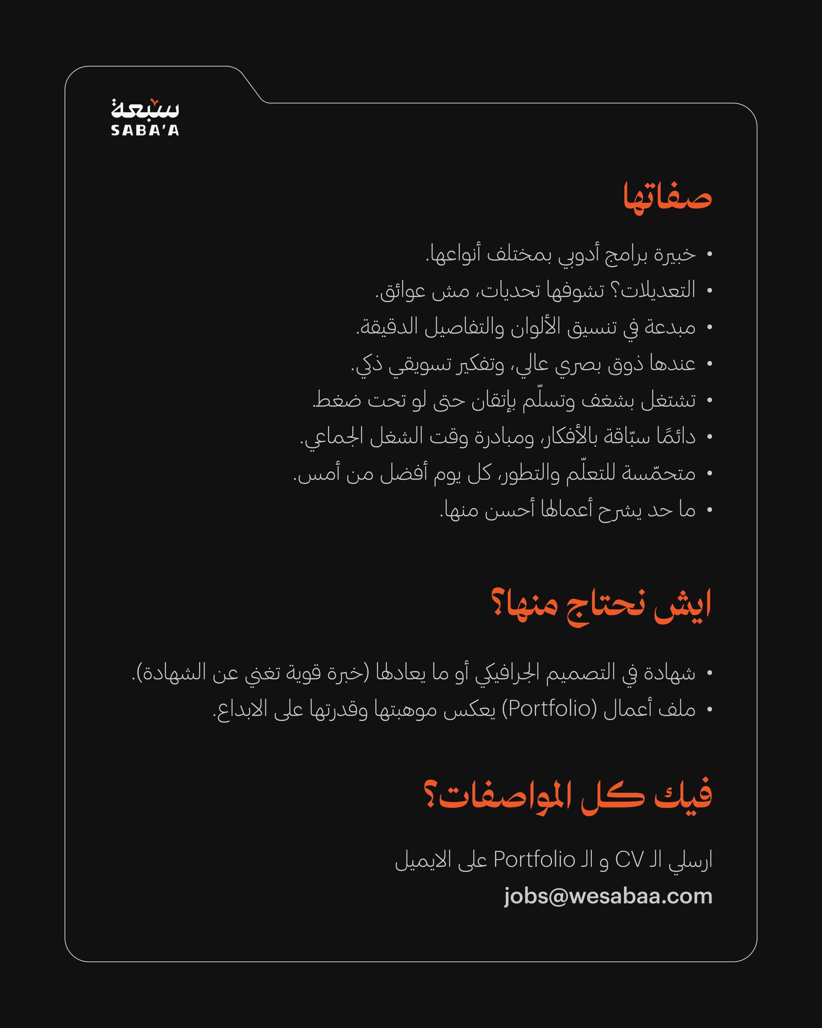 مؤسسة سبعة تعلن عن وظيفة مصممة جرافيكية