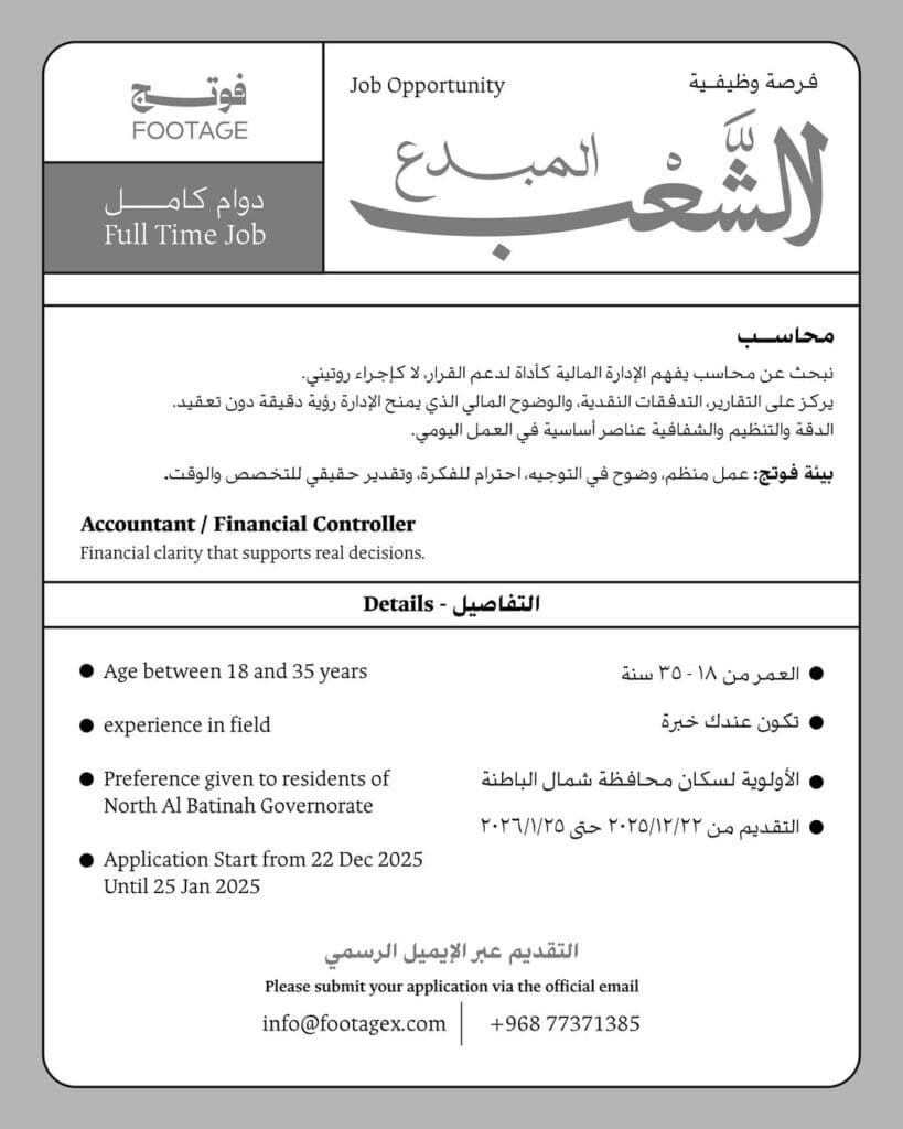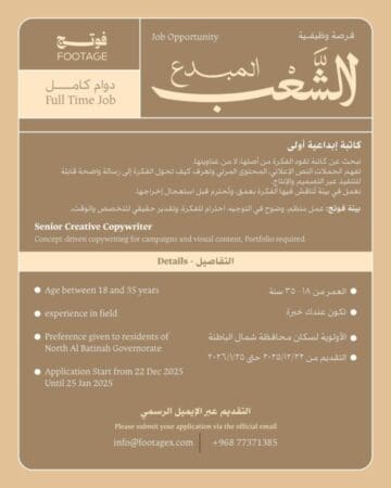شركة أوكسي عُمان تعلن عن توفر وظيفتين شاغرتين