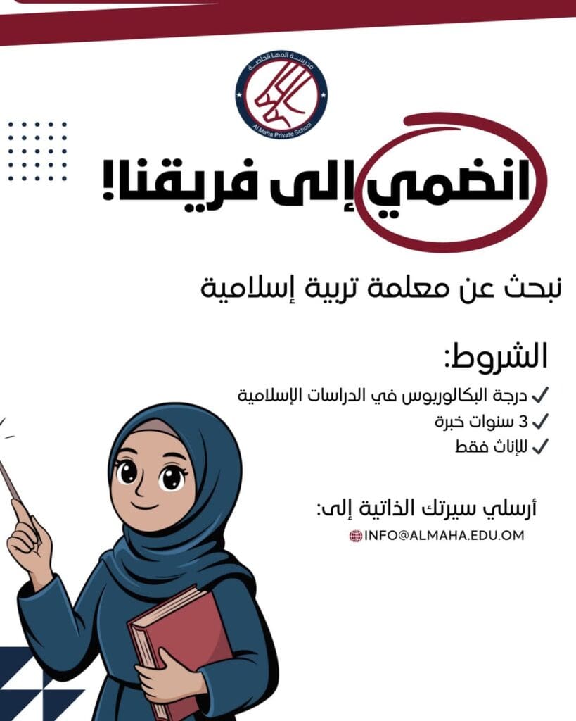 مدرسة المها الخاصة تعلن عن وظيفة معلمة تربية إسلامية