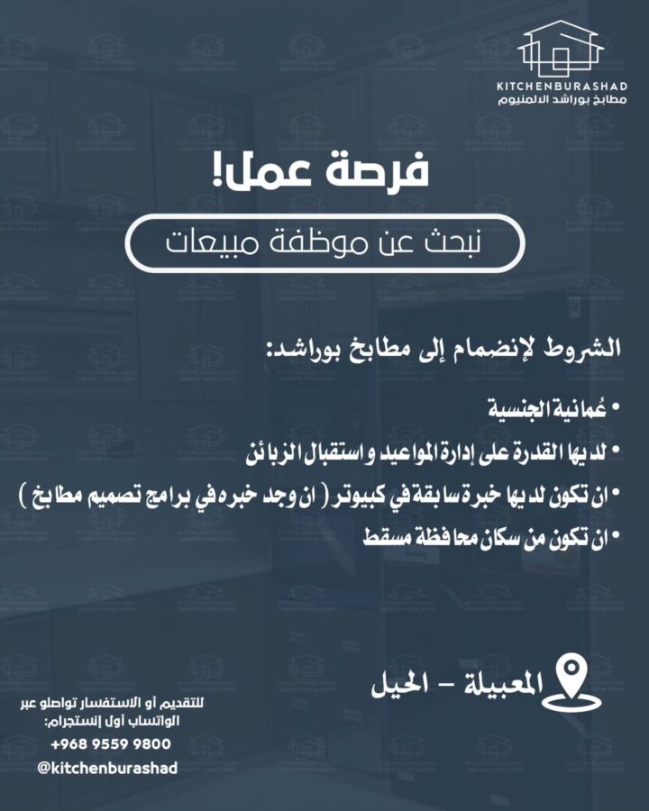 مطابخ بوراشد الألمنيوم تعلن عن وظيفة موظفة مبيعات