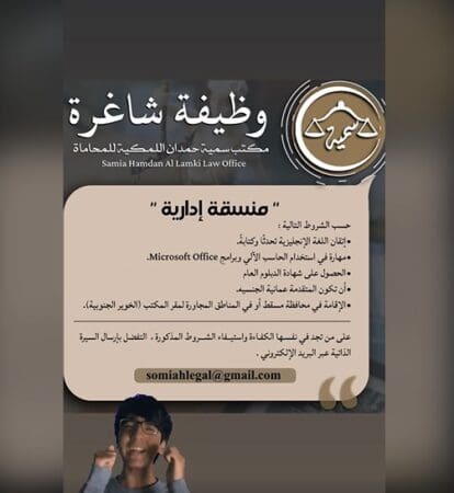 مكتب سمية حمدان اللمكية للمحاماة تعلن عن وظيفة منسقة إدارية