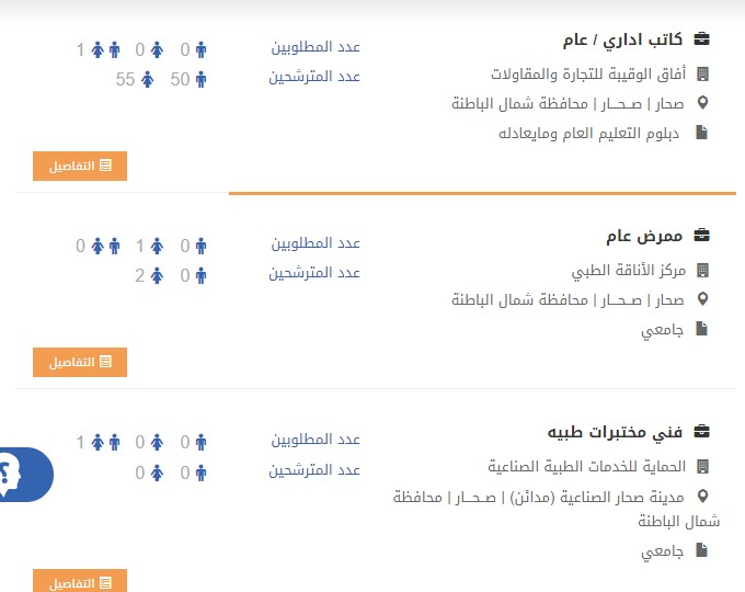 أعلنت وزارة العمل ممثلة بالمديرية العامة للعمل في محافظة شمال الباطنة عن توفر 8 فرص عمل وظيفية للمنهية خدماتهم في مؤسسات القطاع الخاص العاملة بالمحافظة لمختلف التخصصات والمؤهلات ، للاطلاع والتسجيل في الفرص المعروضة يُرجى التقدم عبر خدمة فرص العمل أنقر هناImage