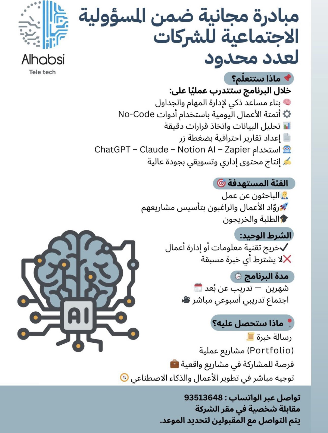 شركة الحبسي لتقنية المعلومات والاتصالات تعلن عن برنامج تدريبي للباحثين عن عمل
