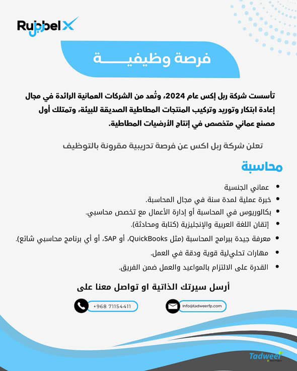 شركة RubbelX تعلن عن فرصة تدريبية مقرونة بالتوظيف