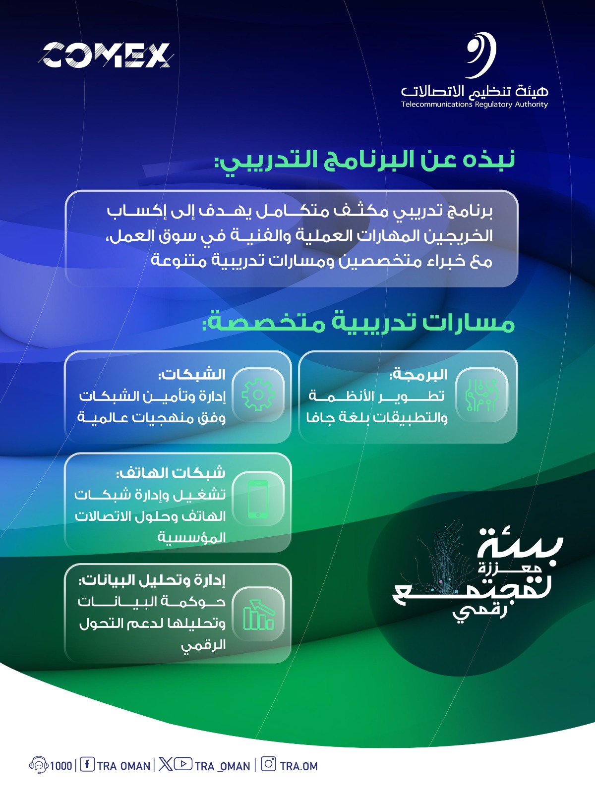 أعلنت هيئة تنظيم الاتصالات عن البرنامج التدريبي لخريجي هندسة الاتصالات والشبكات والتي تعد فرصة لاكتساب مهارات عملية مطلوبة في سوق العمل عبر مسارات تدريبية متخصصة مثل البرمجة – الشبكات – شبكات الهاتف – تحليل البيانات – وسيكون آخر موعد للتقديم بتاريخ 18 سبتمبر 2025 وللتعرف أكثر عن تفاصيل البرنامج قم بزيارة جناح هيئة تنظيم الاتصالات في N1 بـمعرض كومكس 2025 في الفترة من 8–11 سبتمبر وللمزيد من التفاصيل أنقر هنا
